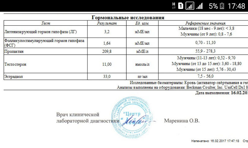 То что мы сейчас видим по анализам, это первичный гипоганадизм, тестикулы вообще не выделяют тестостерон, у моей девушки теста больше чем в нём...