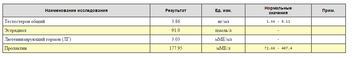 В первом анализа - Тестостерон 12.09 нмоль/л, но в таблице результатов (комментарий) отсутствовали т.к при сдачи анализа не указал Пол , посмотрел на сайте лаборатории Интерпретация результатов Мужчины 18 - 50 лет 5,76 - 30,43 нмоль/л.