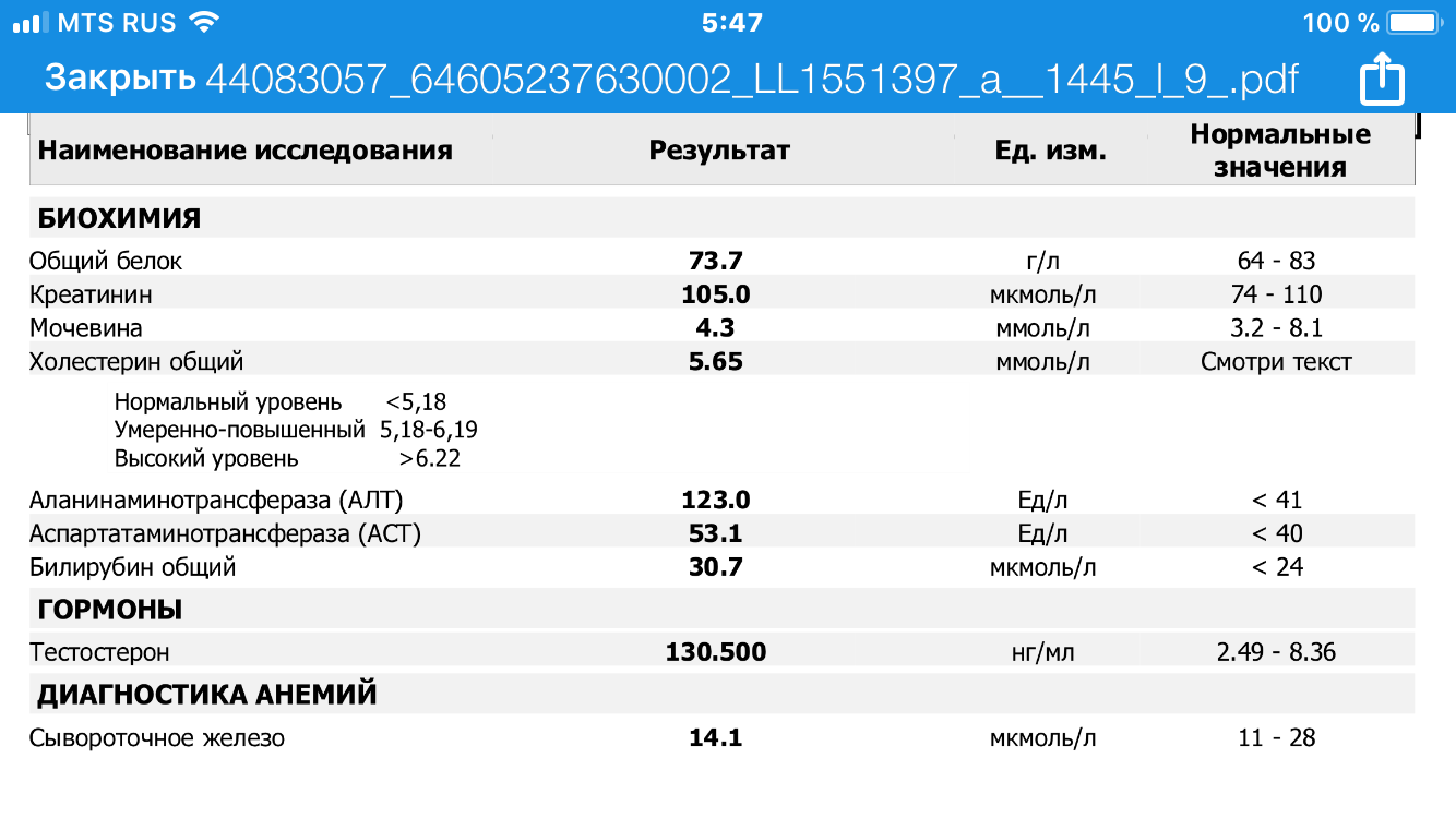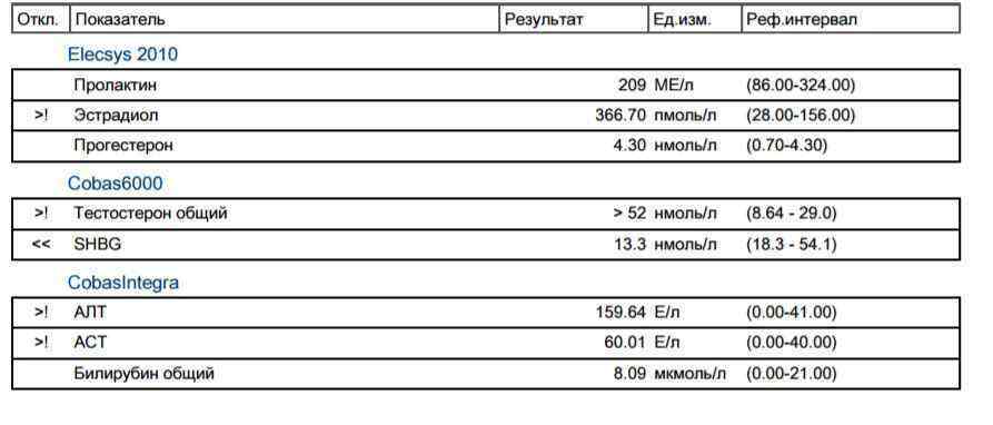 Анализы после 5 инжектов суста и 2 деки (10 день).