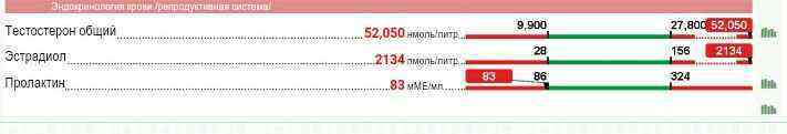 Тестостерон > 34.61 нг/мл (1.42 … 9.23)