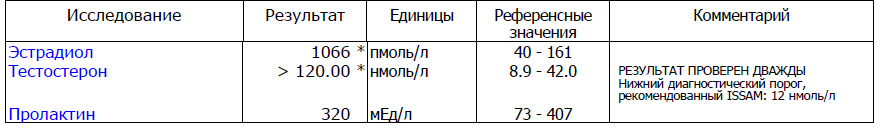 Тестостерон > 120* нмоль/л (8.9 … 42.0)