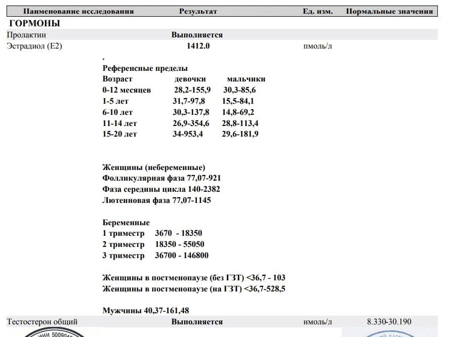 Анализ был сдан через 24 часа после инъекции.