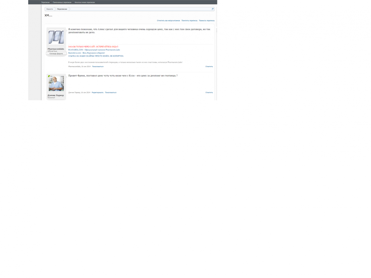 16 сентября, числа нашей первой поставки, фрэнк отписывается в личку. История сообщений сохранена.