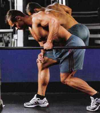 3. Тяга штанги в наклоне или тяга гантели в наклоне.
